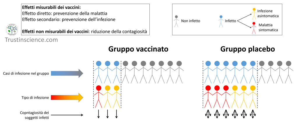 I vaccini che riducono i sintomi della malattia possono anche ridurne l’infettività, sia riducendo direttamente la carica virale, sia contrastando i sintomi che promuovono la diffusione del virus (ad esempio, tosse e starnuti). Ma questa non è una regola e infatti l’infettività va misurata insieme all’efficacia del vaccino.