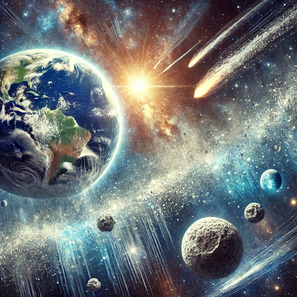 L’acqua, elemento essenziale per la vita, ha una storia cosmica affascinante che non solo traccia le origini degli oceani terrestri, ma rappresenta anche la chiave per comprendere la possibilità di vita altrove nell’universo. Circa 4 miliardi di anni fa, durante il periodo noto come Bombardamento Intenso Tardivo, la Terra fu colpita da una pioggia di comete e asteroidi. Questi corpi celesti, ricchi di ghiaccio e minerali idrati, portarono probabilmente enormi quantità di acqua e materiali volatili.